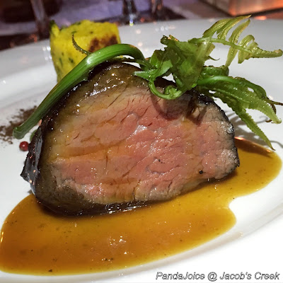 伴以圓融飽满,带着細微香料的辛辣和漿果香氣的 Centenary Hill Shiraz 正好與牛柳的豐膩肉味產生理想的效果,令汁液更為濃郁,肉香四溢