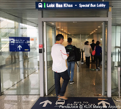 穿梭巴士的閘口就設在輕軌列車旁邊,很輕易便可以找到。穿梭巴士將停靠在衛星航站樓國際航班最密集的 C1 ~ C37 閘口,方便旅客在進入航站後以最短的空間距離到達登機閘口