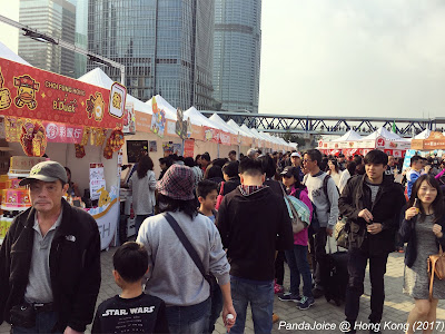 看資訊說今次市集有超過八十個特色攤檔,除了餐飲美食區,亦有互動游樂區、啤酒區、創意手工/ 潮流服飾區... 等等。由中環天橋鳥瞰,現場已是人潮湧湧~