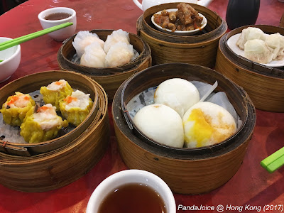 由於我們抵達時已两點多,接近店家休息時間,點心選擇已不多... 桌面上這些基本是剩下的。有蟹黄燒賣、鳯爪、蝦餃、鵪鶉蛋燒賣、叉燒包、流沙包...