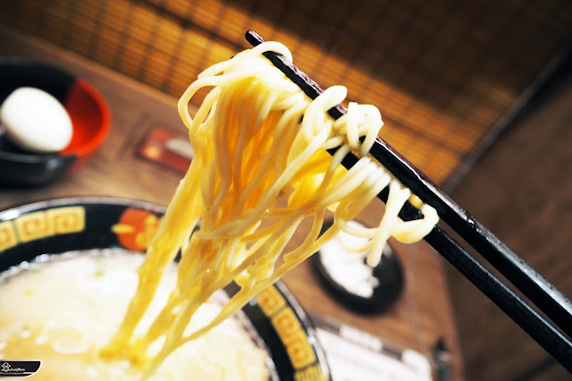 首先從麵條開始品嚐,除了吸附了不少湯頭的豚骨鮮味外,麵條本身確實與湯頭搭配得恰如其分。但平心而論,也無怪乎大家都會點遍硬的麵條,雖然麵體這樣煮來夾起雖屬乎軟硬適中,但或許是由於細麵的緣故,在湯裡泡上了這麼一點時間口感就顯得不夠硬挺,似乎就那麼差了一分分,也無怪乎大多數都選擇偏硬。