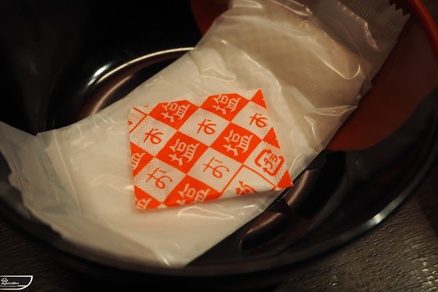 不過貼心的是,半熟蛋上桌時是在小碟子下頭在放上個碗,中間夾著鹽包和濕紙巾,吃蛋時可以沾著鹽巴提味之餘還可以擦手。