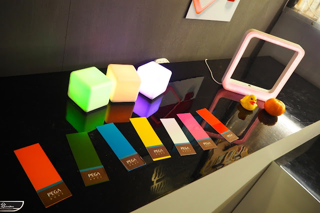 然一旁的和碩設計去年展示了讓不少人感到有趣、可依照附近介質顏色改變色溫的燈具,今年再進化打造了其他造型。