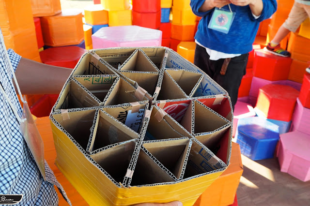 搭乘涼亭般的六角結構,其實是廢紙箱外加膠帶製成的~~