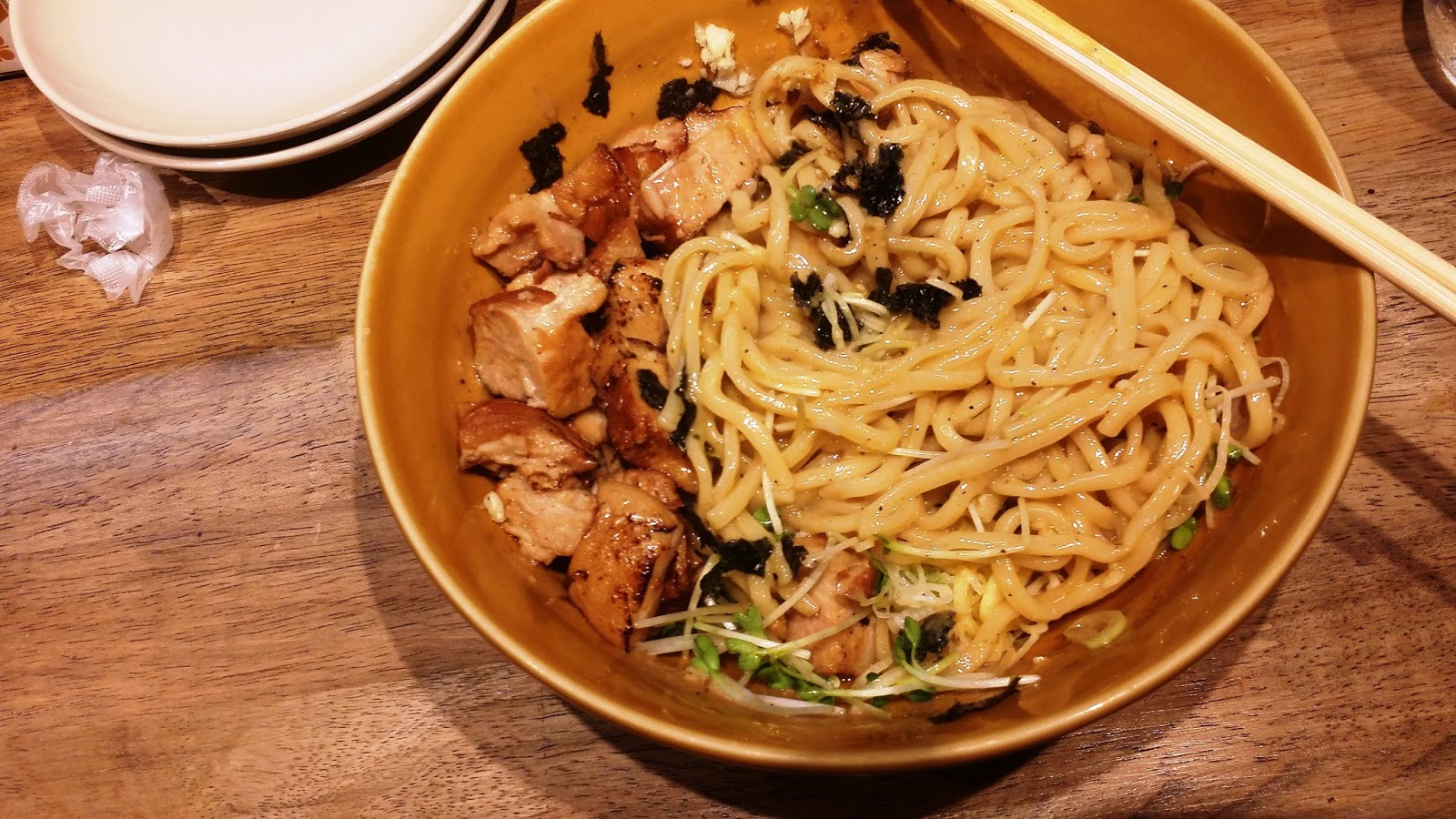 因為這家麺屋やまと Menya Yamato 主打的是 まぜそば Mazesoba 「台灣拌麵」,雖說名字叫「台灣拌麵」,只是原來「台灣拌麵」是名古屋名物!而鋪上配料上桌前,師傅會一直在搖碗內的拉麵 (作用不明...)。