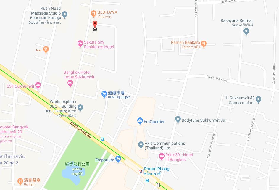 從BTS Phorm Phong站下來,單數巷一邊向Sukhumvit Soi 31方向走,轉進Sukhumvit Soi 33直走大概10分鐘會到,算是巷子比較深處,不愛走路的話坐摩的其實最方便。