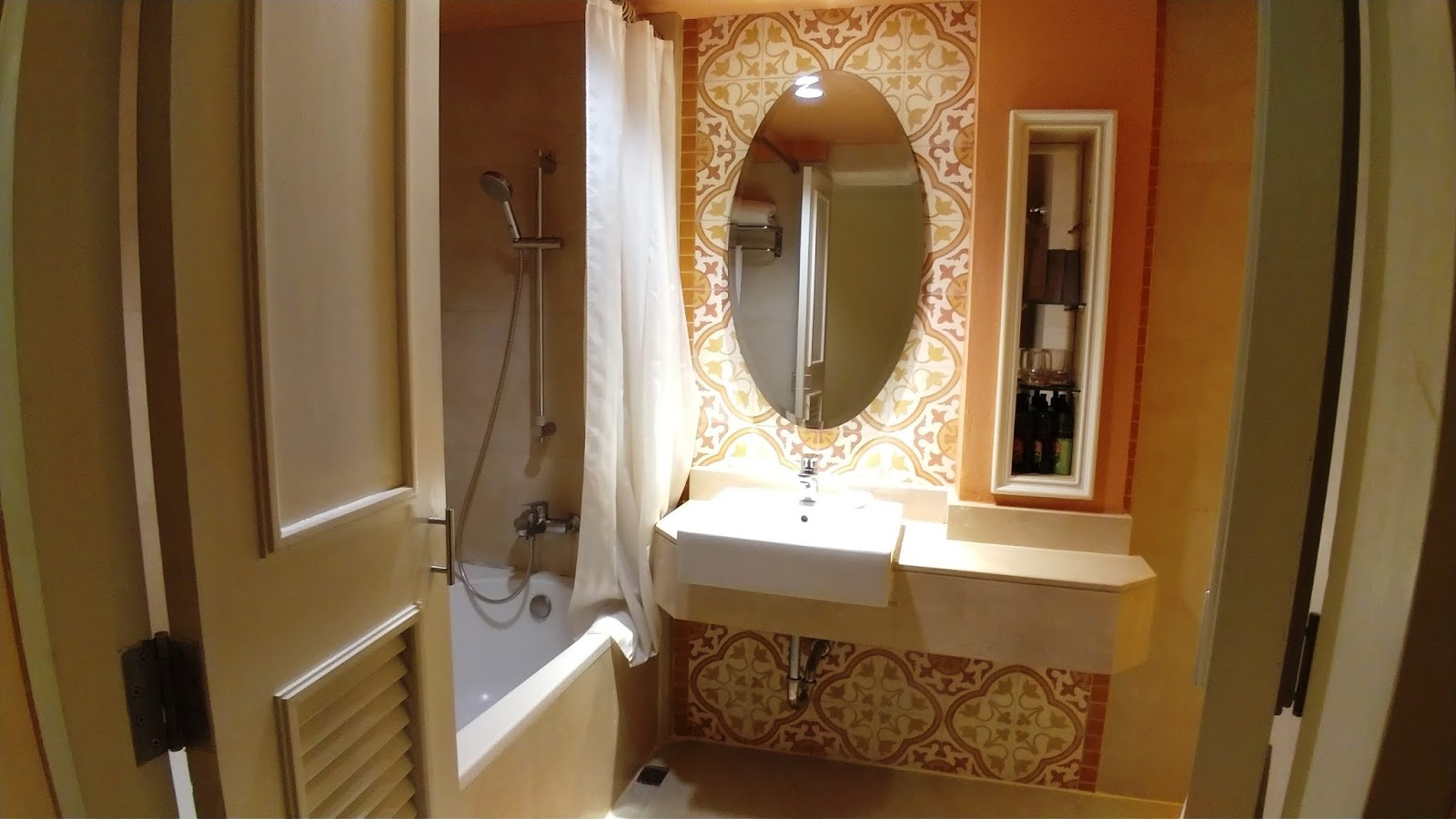 浴室也有馬賽克瓷磚檔案裝飾,浴缸不小,個人備品包括牙膏牙刷還有刮鬍刀都有提供到