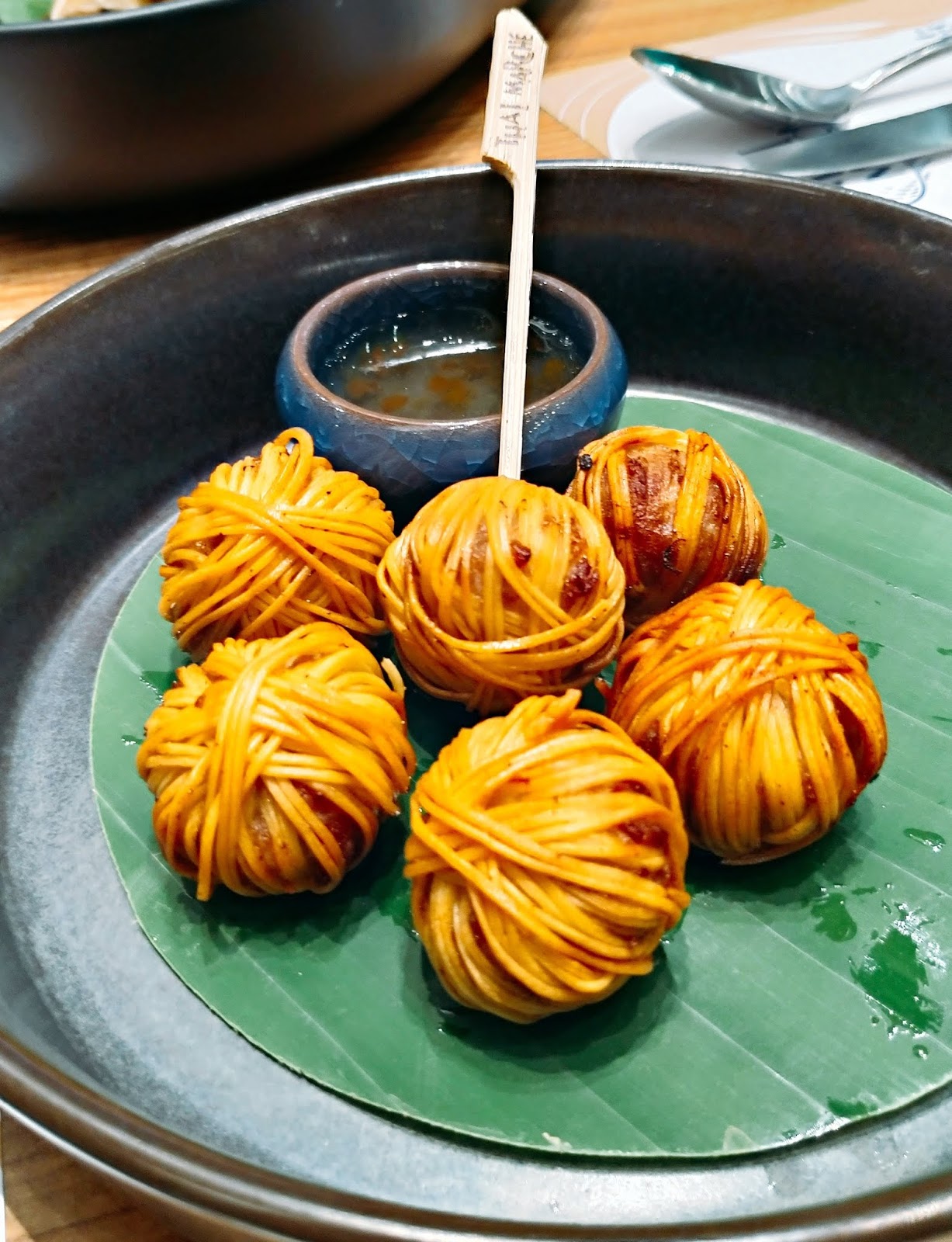 但因為神劇《บุพเพสันนิวาส (天生一對)》的關係,造成這道菜古老當時興的風潮。這是大城王朝時期 (距今最少250年) 已經有的一道菜式。將豬肉剁碎再跟大蒜,雞蛋等拌勻,然後用麵條蹺成藤球狀,最後炸成金黃色上桌。因為很費功夫,以前可以吃到的地方確實不多。