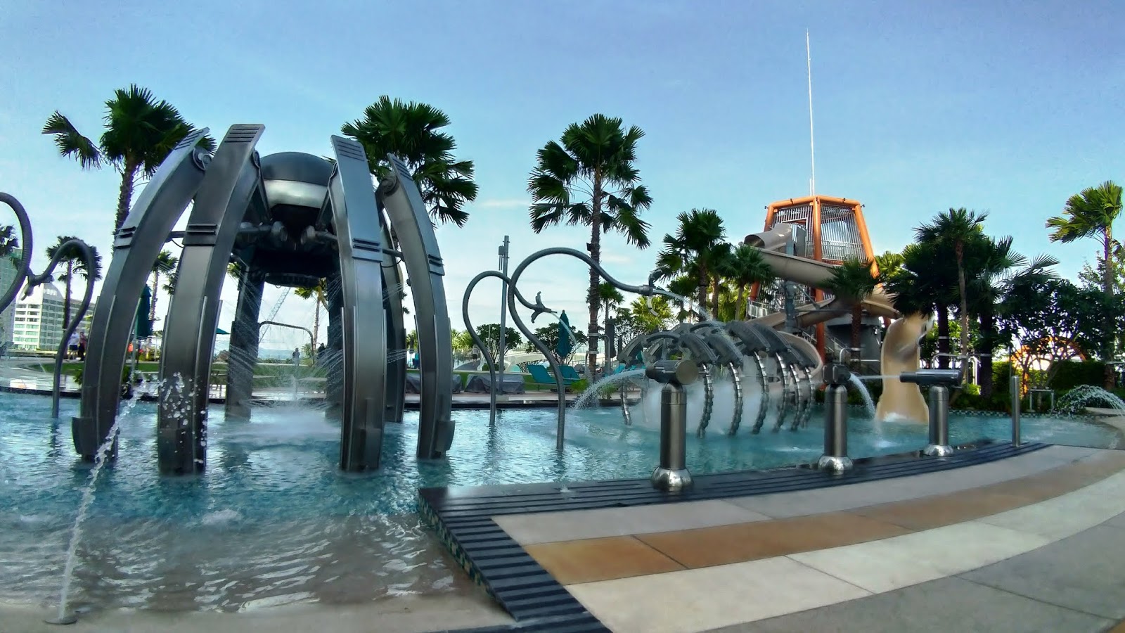 泳池廣場的另一邊是小型水上樂園,有水砲跟滑梯