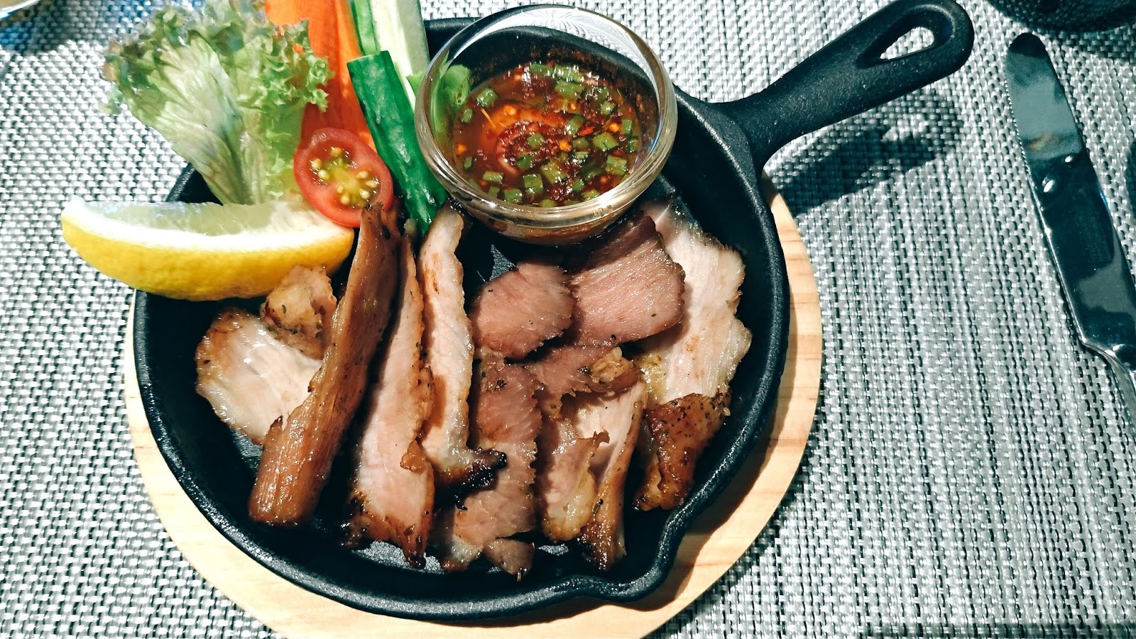 Grilled Pork with Thai Spicy Sauce 烤豬頸肉配泰式辣醬 (150 泰銖)