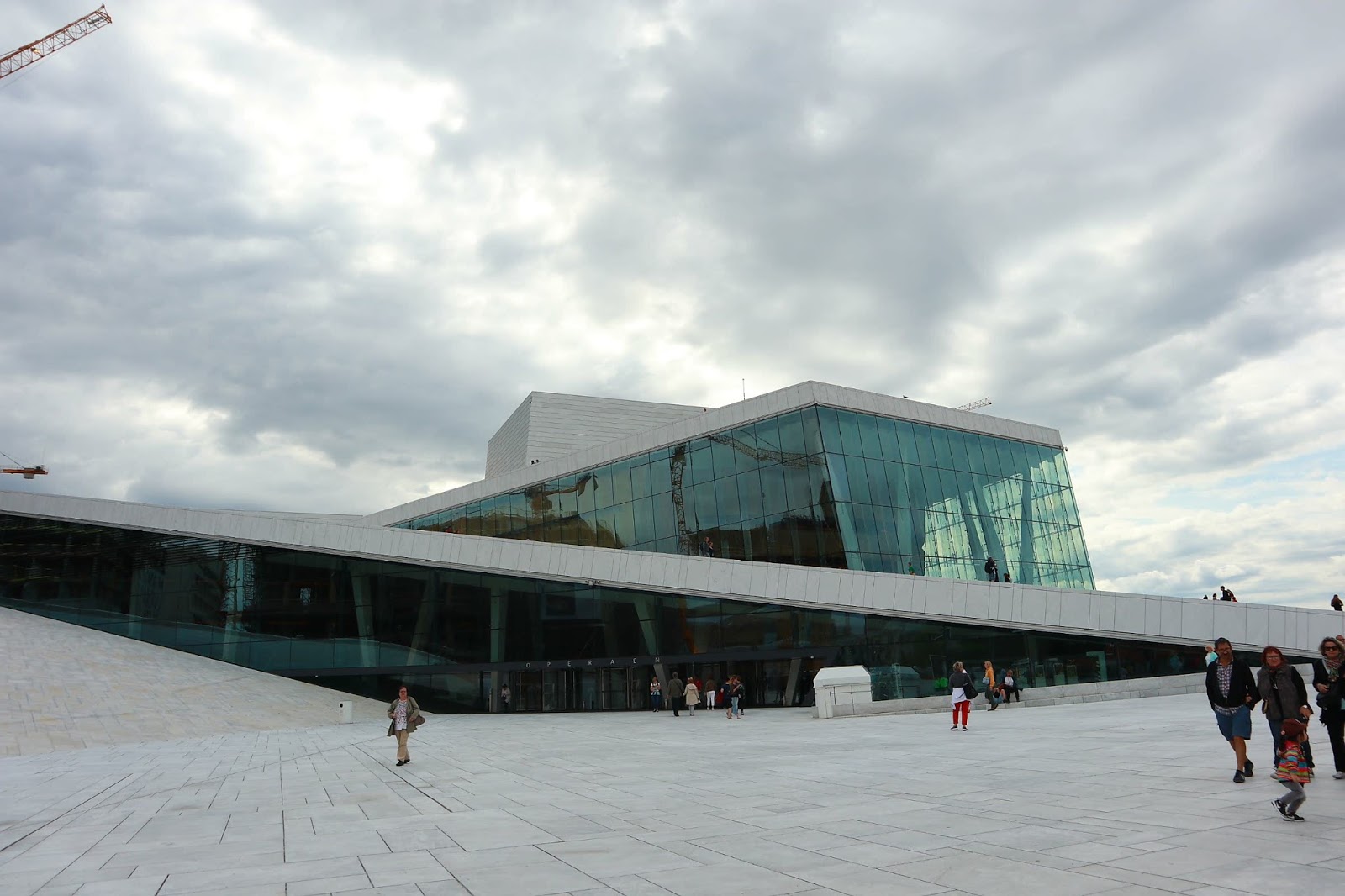 這裡是奧斯陸一大地標,全白色設計,加上可以讓行人行上屋頂觀看峽灣景色。據網友說在這裡看日落是最佳選擇,但夏天奧斯陸是10時多才日落,加上昨天坐了長途機補眠更重要。慢慢走上屋頂,這裡白天陽光最猛是下午3至4時,10時多各人也要披上風衣,因為大陽不猛時,風挺大氣溫只是17度左右,所以風衣及薄長袖外套是必定要跟身。能在人家首都歌劇院屋頂看風景,加上是免費景點這裡必定要來。