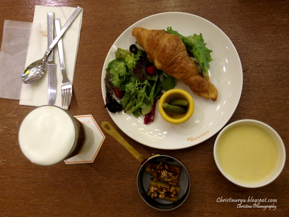 到步了,原來cafe是在L'OCCITANE店的裡面,我們4個人剛好有張大檯給我們。