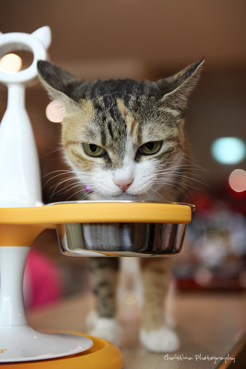 她叫排骨公主,從官方專頁中知道的。睡醒了在吧檯下等食,渴望的眼神很萌。
