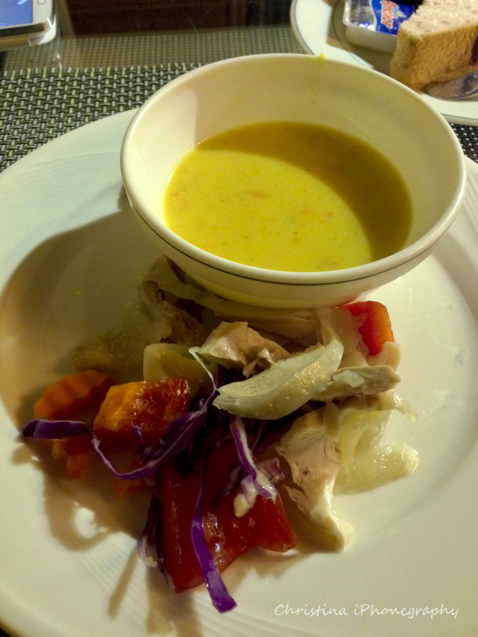 晚餐在入住前或CHECK IN會記下你要吃的主菜,主菜以外就是小型的BUFFET BAR;麵包、湯及沙律啊!