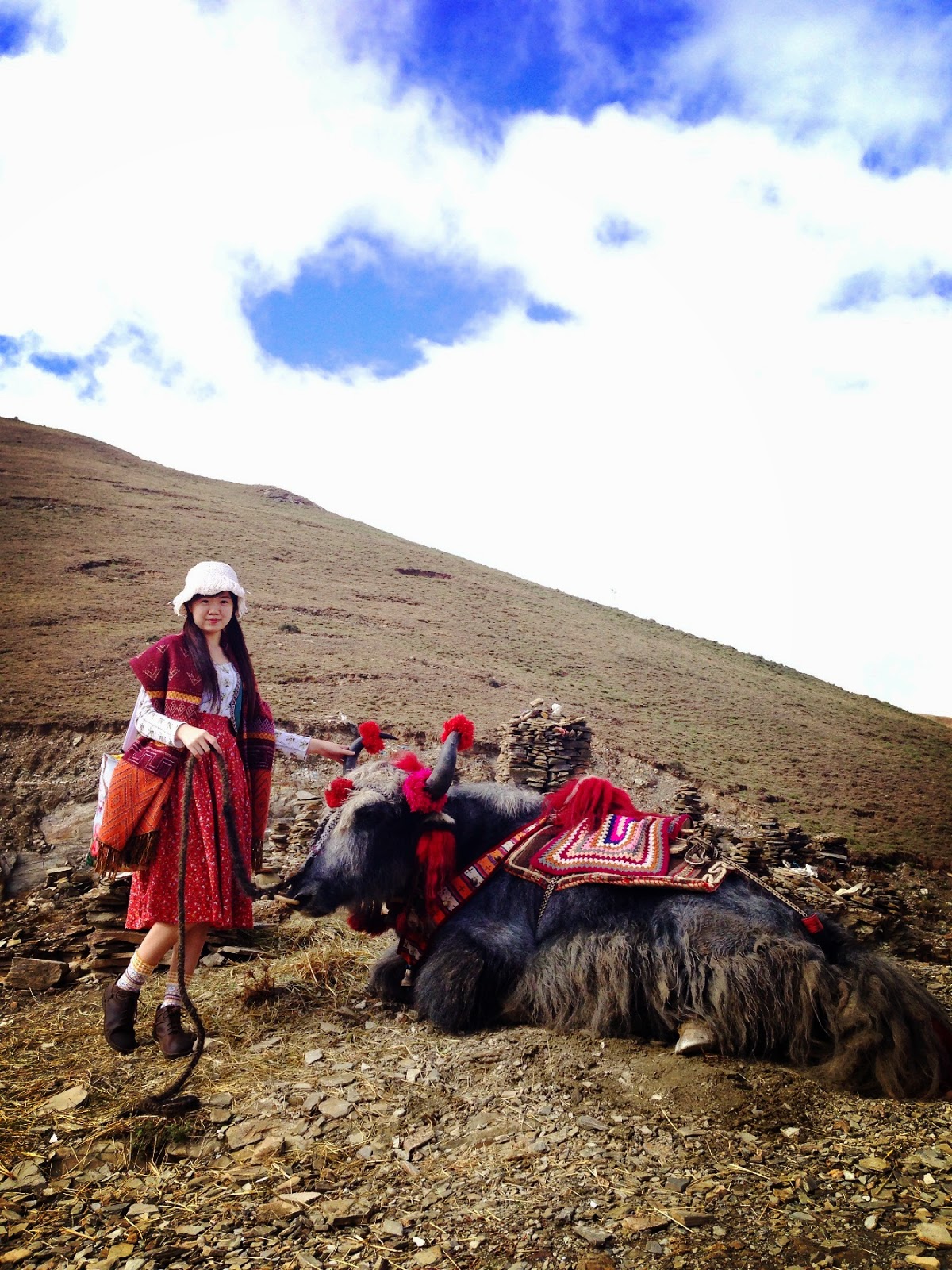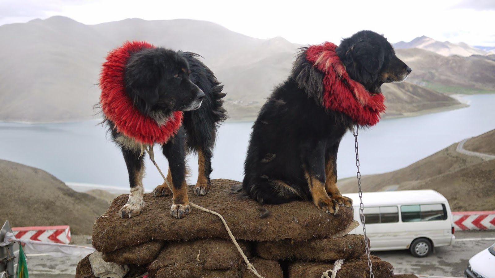 前往羊湖途中,司機就停車叫我們下車休息一下。下車後,我們看見有牦牛和藏獒。老娘馬上衝向牛牛和哮天犬去。