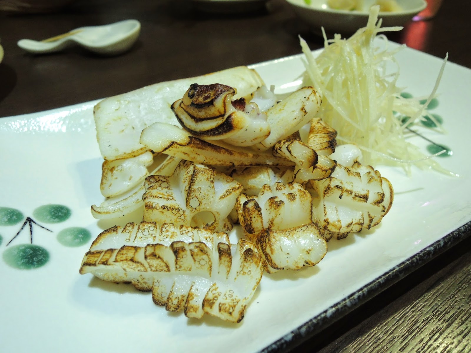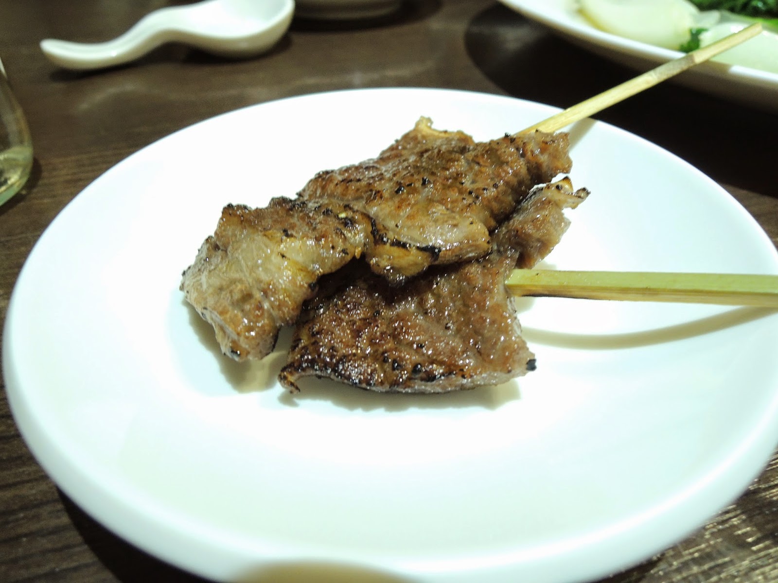 第六七道是牛肉串跟花枝丸。牛肉有點騷味,聞上去比較像羊肉。要重點推介花枝丸!!整顆都是100%由花枝打成,一咬開便見到一條條的花枝,真材實料,外面烤得微脆,再灑黑胡椒調味。OMG!!現在回想起來都想再吃!