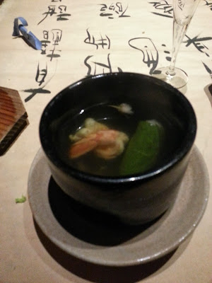 湯是用海鮮調製,鮮甜可口,裡面放了用紫蘇業包紮的米飯,米飯是日本的道明寺米,非常有嚼勁,那樣才不會放湯那麼久也不化開。