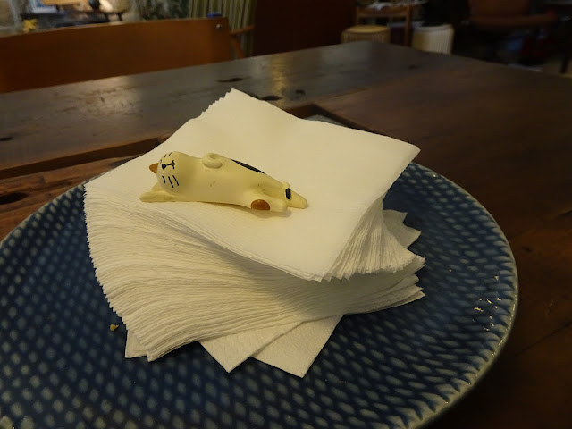 除了老物件,咖啡店還有不少寄賣貨品,問Willie怎樣決定放置哪些寄賣物件,他說主要是看寄賣品跟Originn Space本身的環境配不配合,例如特色的手工藝品、帶點復古風味的傢俱都會比較適合,而由工廠大量製造的那種很遊客式的紀念品就不太適合了。所以在咖啡店會找到由非洲迦納而來,人手編織的七彩籐籃、台灣設計師Biduhav的手沖咖啡架、日本插畫家繪畫的明信片和月曆、清邁的青瓷杯、古老傢俱等有趣物件,喜歡的話把它們買回家吧!以前Originn Space曾經養過一隻小貓名叫「巧巧」,所以咖啡店也有很多貓的裝飾,很可愛,貓奴大愛。