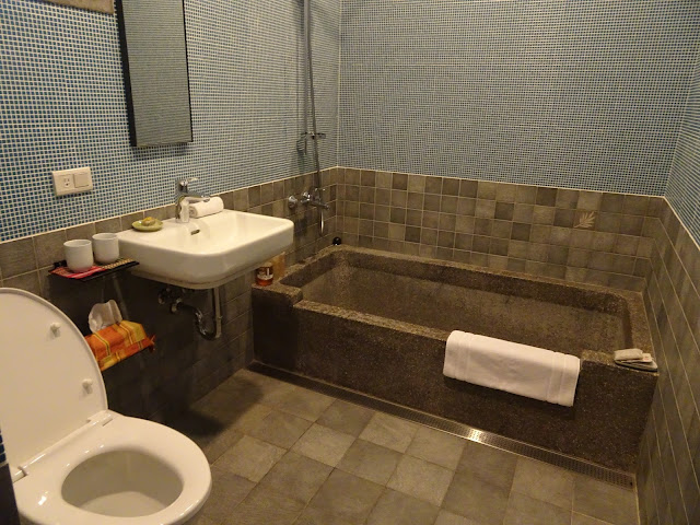老房子的其中一個特色是樓底高,所以房間都極具空間感。我最喜歡三樓這間客房,古典又有氣派。浴室雖然不在房內,但不用與其他房客共享。在磨石子浴缸浸浴特別有風味,還有來自台南的藥材浴包,玩了一整天在睡前來個舒適浸浴,疲勞盡消。