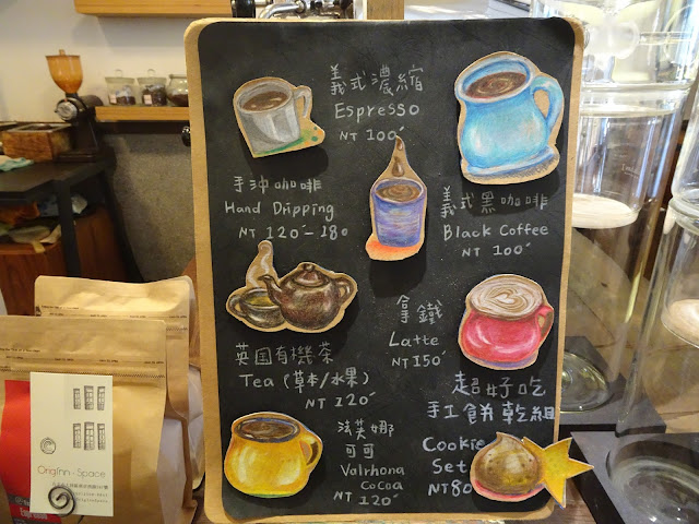 咖啡店除了賣幾款常見的咖啡外,還有手沖咖啡、可可和茶。飲品價錢由台幣$100-$180。Originn Space用的咖啡機是1962年的FAEMA E61,全世界第一台採用子母水槽作為熱水蒸氣轉換的咖啡機,劃時代的設計非常酷!另外還有手工餅乾,台幣$80一份。咖啡店的環境很安靜,老闆也很努力為客人維持一個寧靜悠閒的空間,如果客人太多,老闆會把門關上,以減少人流。這種寧願少點客人少點收入也要維持店內優雅氣氛的舉動令我很欣賞!