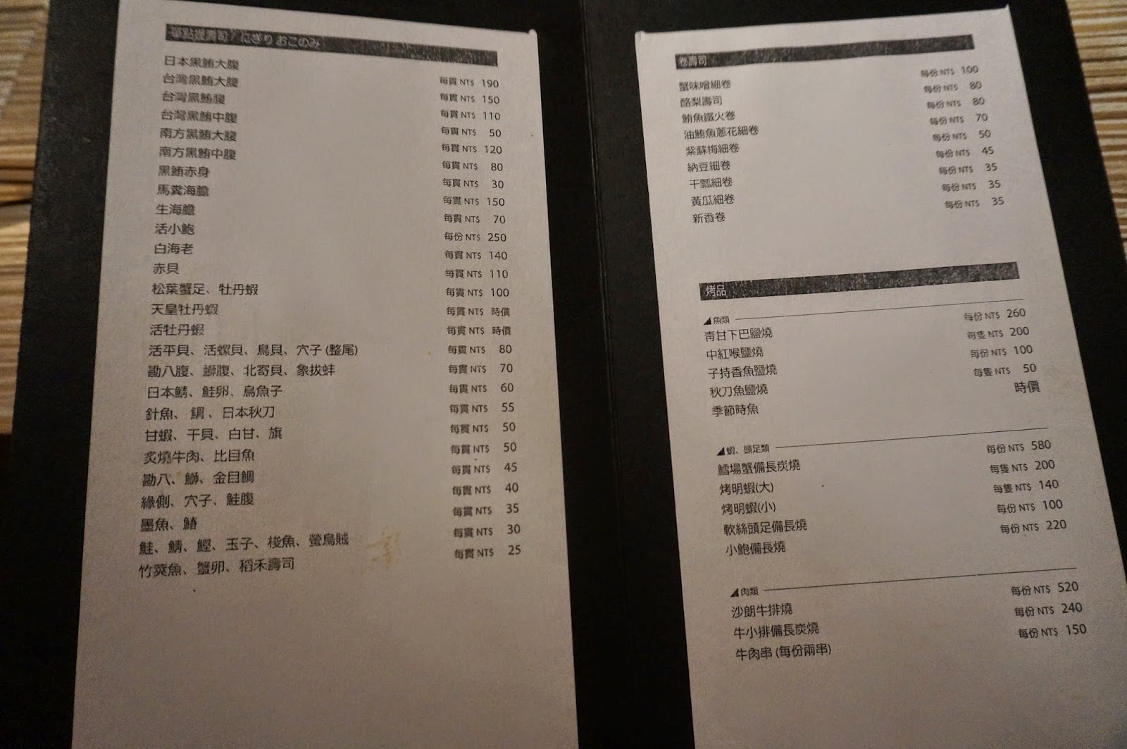 俾個預算大家,我黎過上引兩次,一次係lunch,只食壽司區,一個人大約食左港幣$150;另一次係dinner,食曬海鮮區+壽司區,一個人大約食左港幣$350。講唔上好抵,但我覺得值既。丫,順帶一提,呢度服務質素一般架咋。可能對台灣人有特別期望,覺得佢地會比較熱情有禮,而呢度就完全冇呢種感覺,所以大家都不要有期望啊。