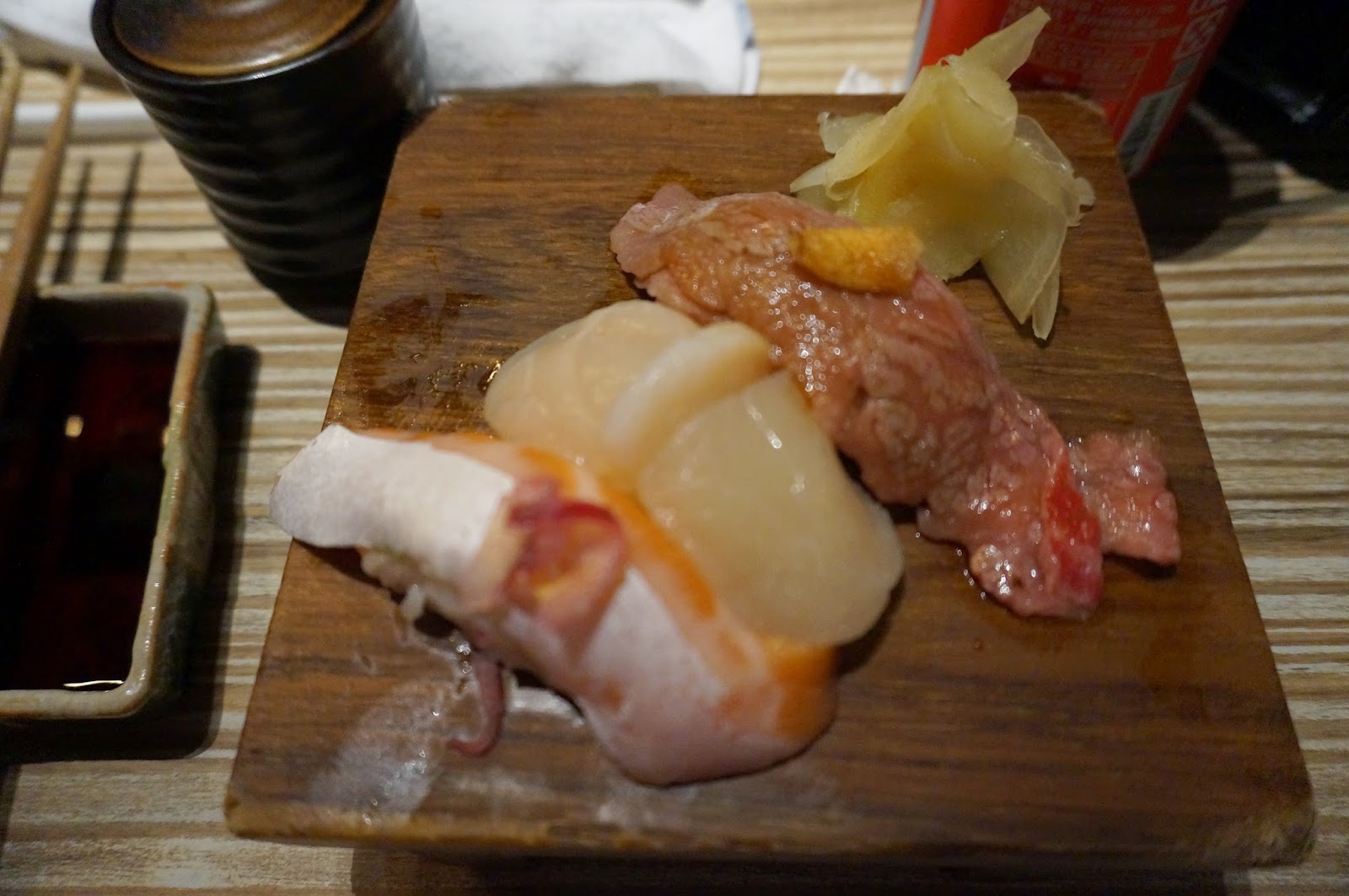 我的真正目標係後半部的立吞區,即係冇得坐而要企係度食野既地方。立吞區又有分食壽司定海鮮,是兩間不同的店。我會建議先拎左壽司區的飛,因為通常要等1-2個鐘,拎左飛就去食海鮮先,海鮮區通常唔駛等,所以食完海鮮就應該差唔多可以食壽司啦!