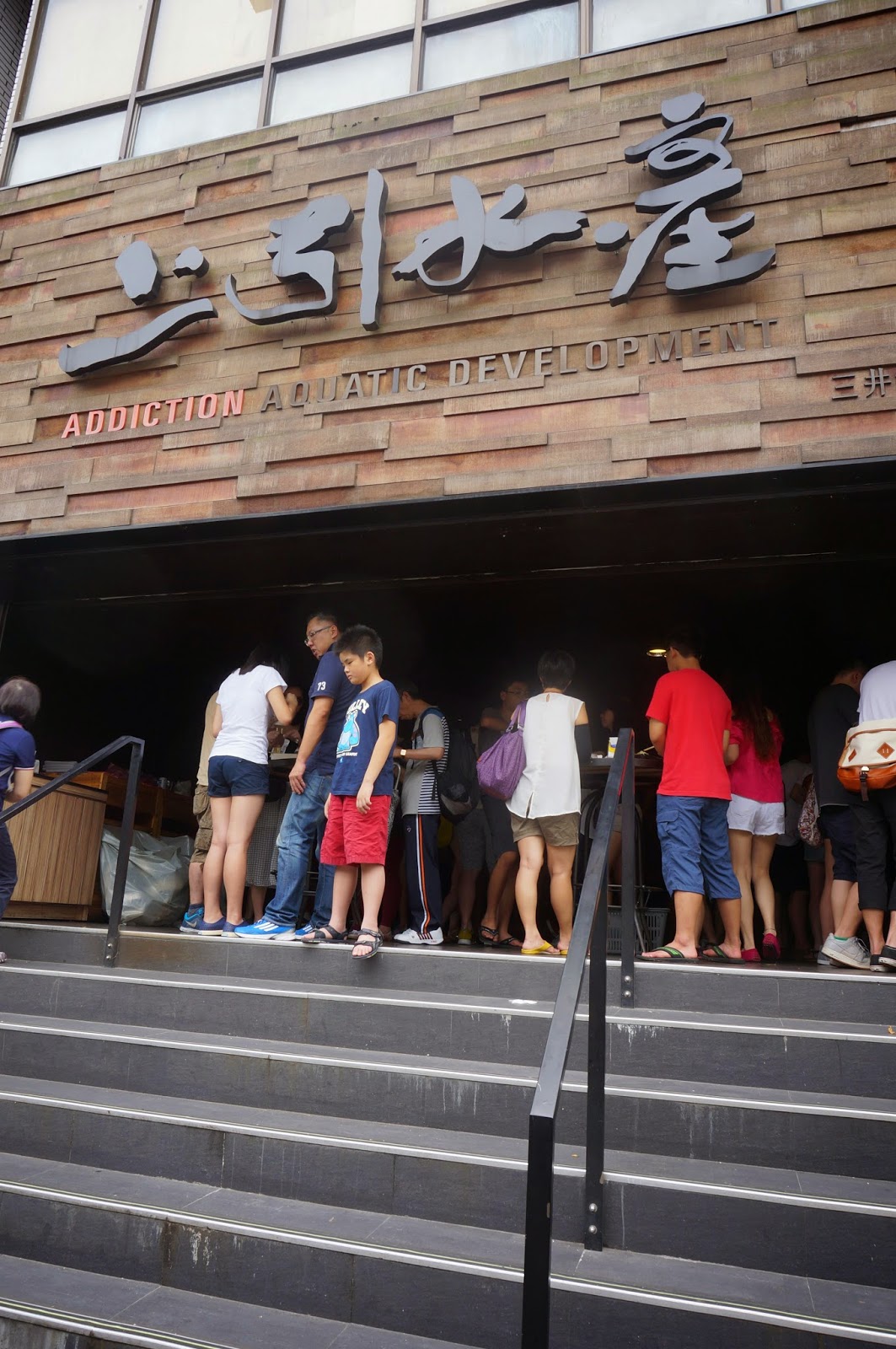 上引水產位置有點隔涉,在兩個捷運站中間,無論邊個站落都最少行20分鐘,而且好需要google map輔助。由捷運中山國中站搭的士去就台幣300蚊左右,如果肚餓我建議搭的士。哈哈。一去到門口已經見到有人企係度食緊野,因為門口放置左幾張高枱,大家可以即買即食,不過冇冷氣架。