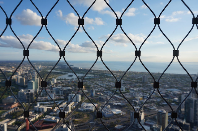 如果對個透明包廂冇特別興趣,都仲有一個室外部份,可以唔駛隔住玻璃睇,但就隔住鐵絲網睇,不過景色都好唔錯架。高空睇墨爾本好靚!