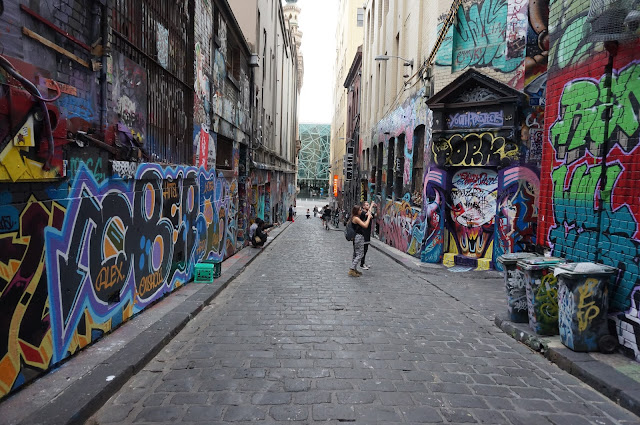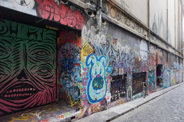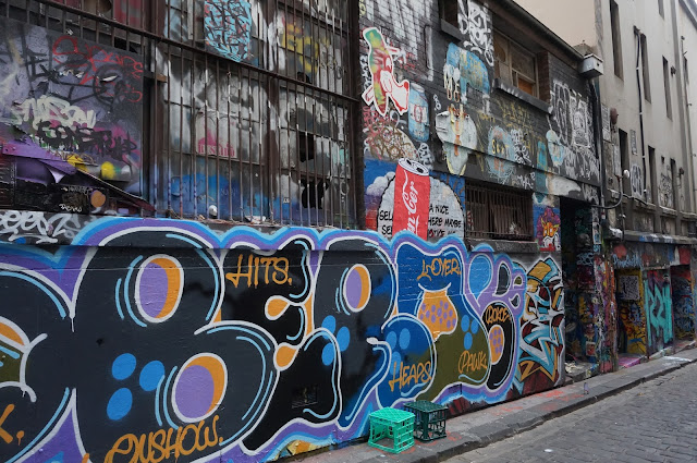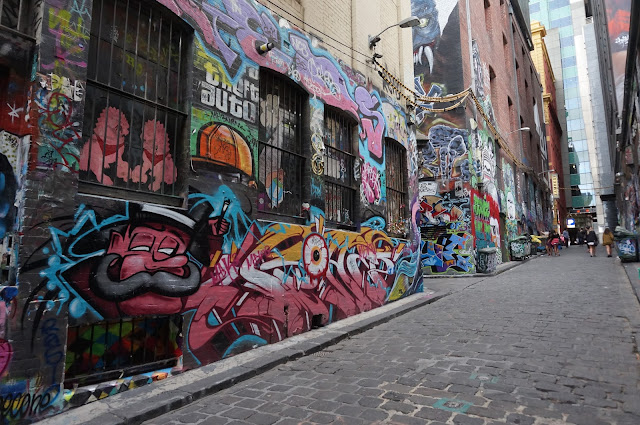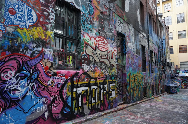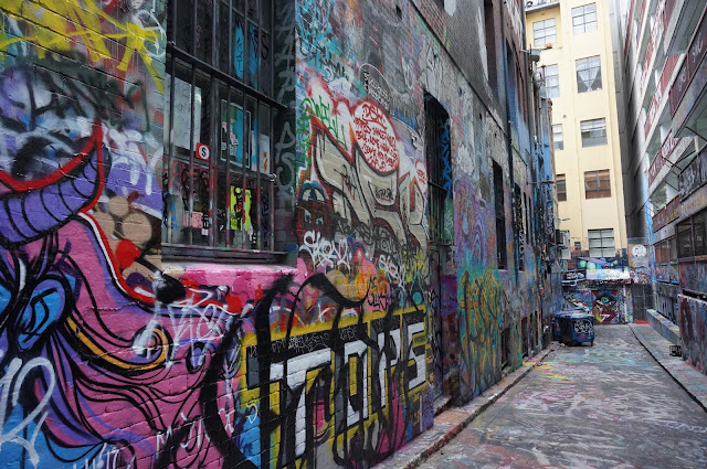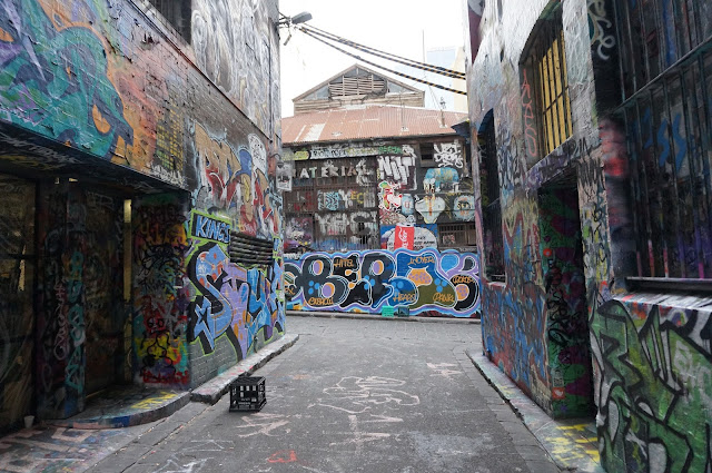 Flinders Street Station對面係我想介紹的第二個景點,就係一條畫滿塗鴉的巷仔,名為Hosier Lane。呢度係任意俾人畫塗鴉,所以每隔一排就會有新的塗鴉,每次去都會睇到唔同的作品,好多塗鴉都畫得好靚!話說我曾經睇過有朋友去呢度有大眼仔的塗鴉,所以我就好想黎啦,但我黎到搵極都搵唔到,我諗佢已經俾其他公仔覆蓋左......鳴!其實墨爾本周圍都有好多塗鴉,行行下就會見到,不過想好集中欣賞下墨爾本的街頭藝術就一定要黎Hosier Lane。