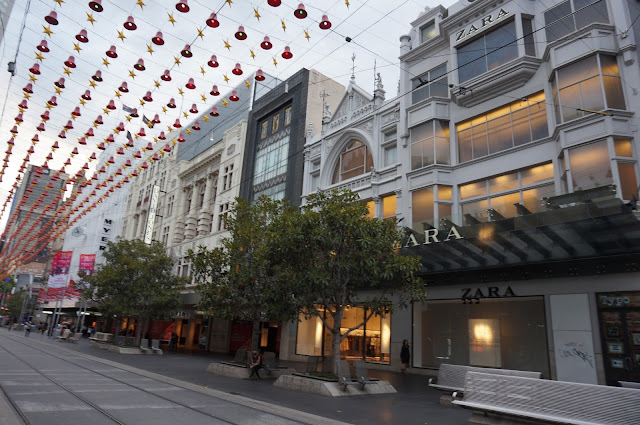 朝早去完Queen Victoria Market,下晝就可以留在Central地區啦。由市集行去Central地區大約半個鐘,見到一間超古典的H&M就到左啦。呢度係墨爾本最熱鬧的地區,有好多商店可以行,好多餐廳,我覺得條街好靚!要留意係澳洲商店都好早關門,大約5點就會火速收工,條街就會突然好靜......第一日黎我係嚇親既,仲諗住食個下午茶再慢慢行街,但行左一陣已經發現大家執緊野準備收工......所以中午開始行就差唔多啦。
