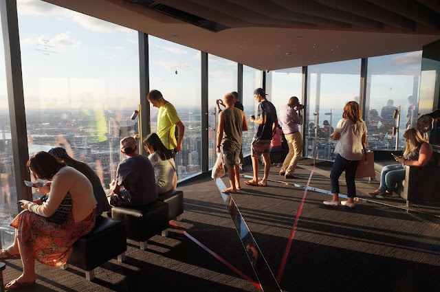 行完之後去返Flinders Street Station,穿越個火車站另一邊會見到有條河,過左橋再行多幾分鐘就會去到第三個景點,觀光塔Eureka Skydeck 88。觀光塔係好多城市都有的東西,墨爾本呢個有咩特別呢?佢係南半球最高的觀光塔,高297米,可以360度睇到墨爾本的景色。最特別係上到88樓的觀光樓層,個度有一個包廂會伸出半空中,包廂有個名叫The Edge,個底係透明玻璃,即係好似香港昂坪360纜車個水晶車廂呢,你就會覺得自己企在近300米的半空中,好刺激地睇風景。呢個係全球唯一的體驗!上觀光塔要澳幣$20,約港幣$120,如果想入個透明包廂就要加多澳幣$12,約港幣$72。