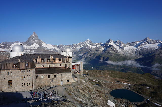 最後一天,也是旅程中其中比較難忘的一天。要看馬特洪峰不只Matterhorn Glacier Paradise,還有另一個非常值得去的Gornergrat,高3089米。搭火車上到終點站就是Gornergrat,下車之後放眼全是白茫茫的冰河和雪山,很震撼!觀景台被29座達4000米的阿爾卑斯山群峰包圍,景色很廣闊,超級壯麗!看到完全無遮擋的馬特洪峰。天氣又很好,不過都幾冷的,而且一下子上來高海拔,起初呼吸都有點點不順暢,大家要行動慢一點,適應了就沒事。