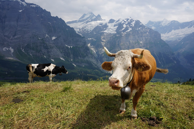 最後我是從First坐纜車到Schreckfeld,跟牛牛玩了一會(牠們住的地方風景真的不得了),再搭纜車回Grindelwald。