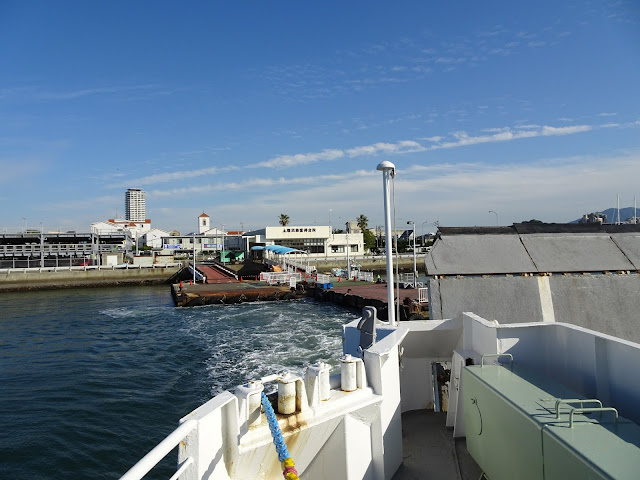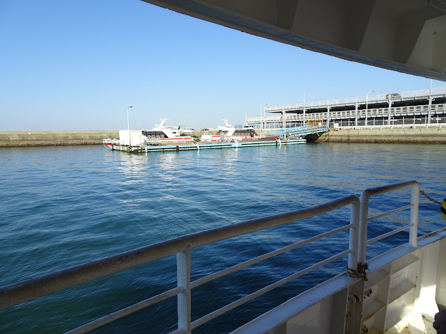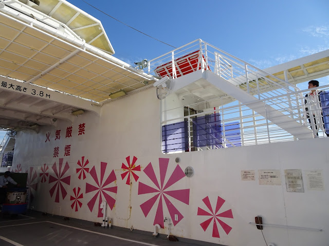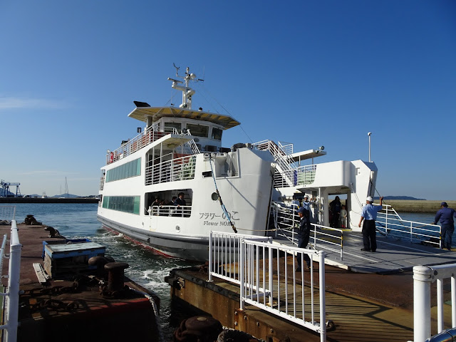 船期大約一個鐘一班,有時半個鐘。呢架船有名,叫花之能古,單車同私家車都可以上船。船上有室內都有露天位,欣賞下海景吹下海風,大約10分鐘就到喇!