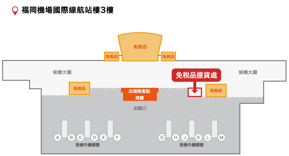 與一般免稅店最大的不同之處在於「店內購買的商品,必須在福岡機場完成出境手續後於指定櫃台領取」。