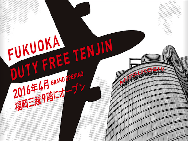 九州地區首間機場型免稅店「FUKUOKA DUTY FREE TENJIN」4月在福岡三越百貨9樓盛大開幕!機場型免稅店所販售的商品,除了消費稅以外,還可抵免菸酒稅和關稅