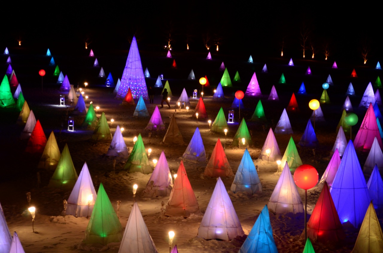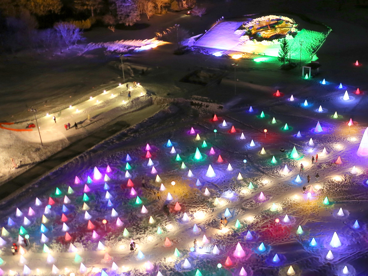 北海道 音更十勝川白鳥祭 雪地配上彩燈音效 形成夢幻的場景