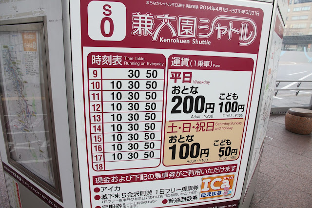金澤JR外坐巴士在兼六園站巴士站下車,步行5分鐘