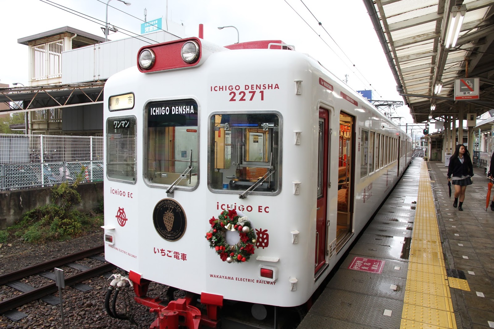 貴志川周邊有大量的草莓園,以此作為設計主題的草莓電車受到大眾的喜愛。電車內的木質地板以及座位、桌椅等全都是用原木打造而成。