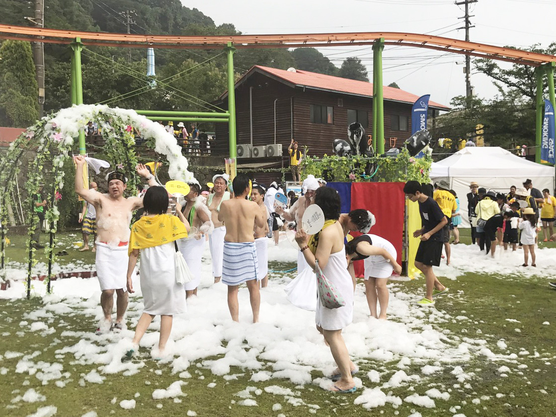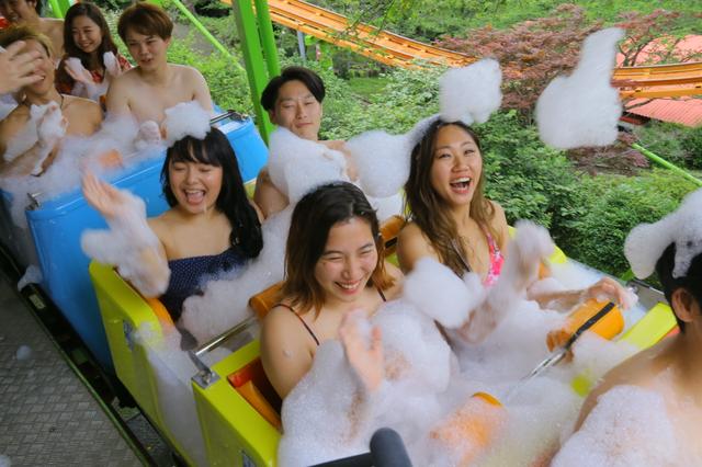溫泉結合遊樂園的「湯~園地」(溫泉樂園之意,日文的遊園地意指遊樂園,與湯園地發音相同)已於29日,在大分縣別府市的遊樂園「別府RAKUTENCHI」開幕,現場湧入約3000人。搭乘座位內充滿含有溫泉成分泡沫的雲霄飛車等,來園者可享受12項以溫泉為主的遊樂設施。「湯~園地」營業至31日。