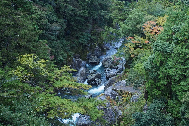 奥多摩の渓谷の中で、広大な流域面積を有し、峻嶮な山岳の間を流れ落ちる渓水は大古の岩石を削り取って雄大な渓谷美をつくり出しています。