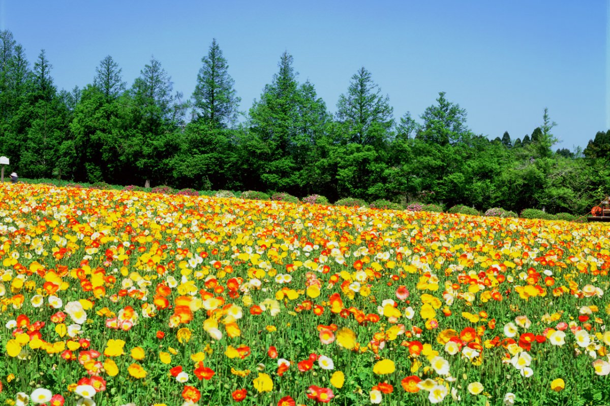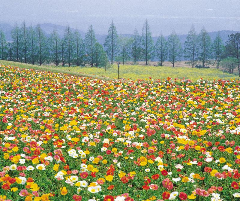 這座標高540公尺,能一眼俯望山腳下市區街景的山中平原裡,盛開著油菜花以及野罌粟等各式各樣的花朵。