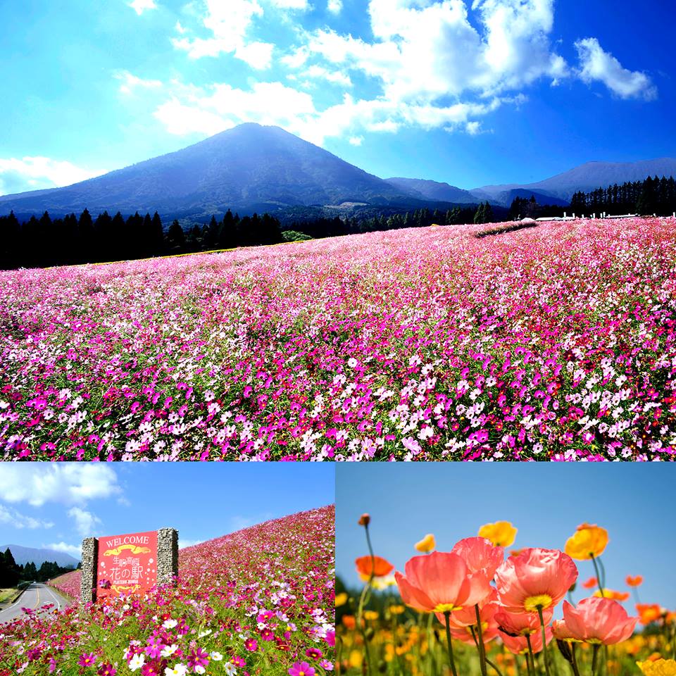 背對著霧島群山往九州山地望過去,眼下能展望西諸盆地。春天可觀賞油菜花,三色堇與冰島罌粟花,夏天則有向日葵,撒爾維亞,百日紅以及美國蓮。又名花朵高原的生駒高原,每到秋天時節,海拔550公尺的高原被大波斯菊花海給淹沒的景象,為全國所熟知。