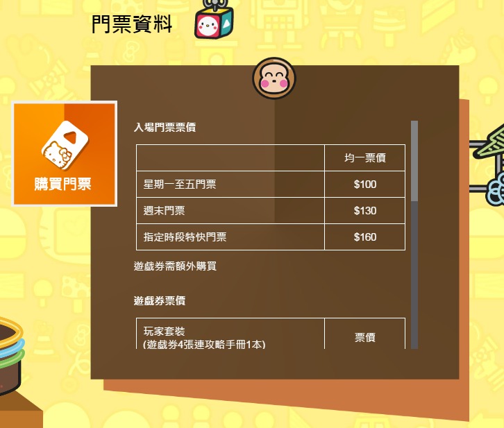 場外售票處購買 / 場內遊戲百寶店購買 $80
