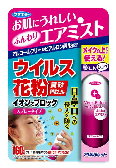 由福馬(Fumakilla)公司新推出一款,噴在面部及頭髮上便能預防細菌與花粉侵入體內的噴霧“Allershut Virus花粉Ion De Block Spraytype”(日文為:アレルシャットウイルス花粉イオンでブロックスプレータイプ),將於11月中旬發售。