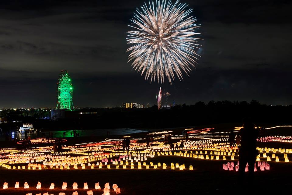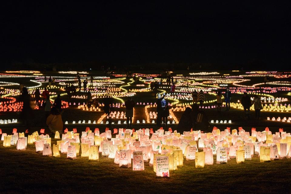 海之中道海濱公園將於12月23日一連三晚將會舉行「海之中道聖誕燭光夜2015」活動,可以欣賞燈籠拼出的圖之餘,每晚7:30PM更會發放300枚煙花,讓天空也襯托地面綻放色彩。