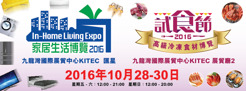憑票更可免費參觀同場舉行之「家居生活博覽2016」,電器Outlet全場貨品低至1折發售,室內設計、傢俬床品、家用電器、家居風水一應俱全,歡迎各新居入伙人士到場參觀;
