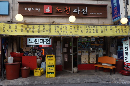 [韓國美食] 露天煎餅(노천파전)慶熙大(回基站)前有一條專賣煎餅與馬格利酒,充滿大學城情調的街道。在多家煎餅店中的「露天煎餅」也是有許多人喜愛的老店