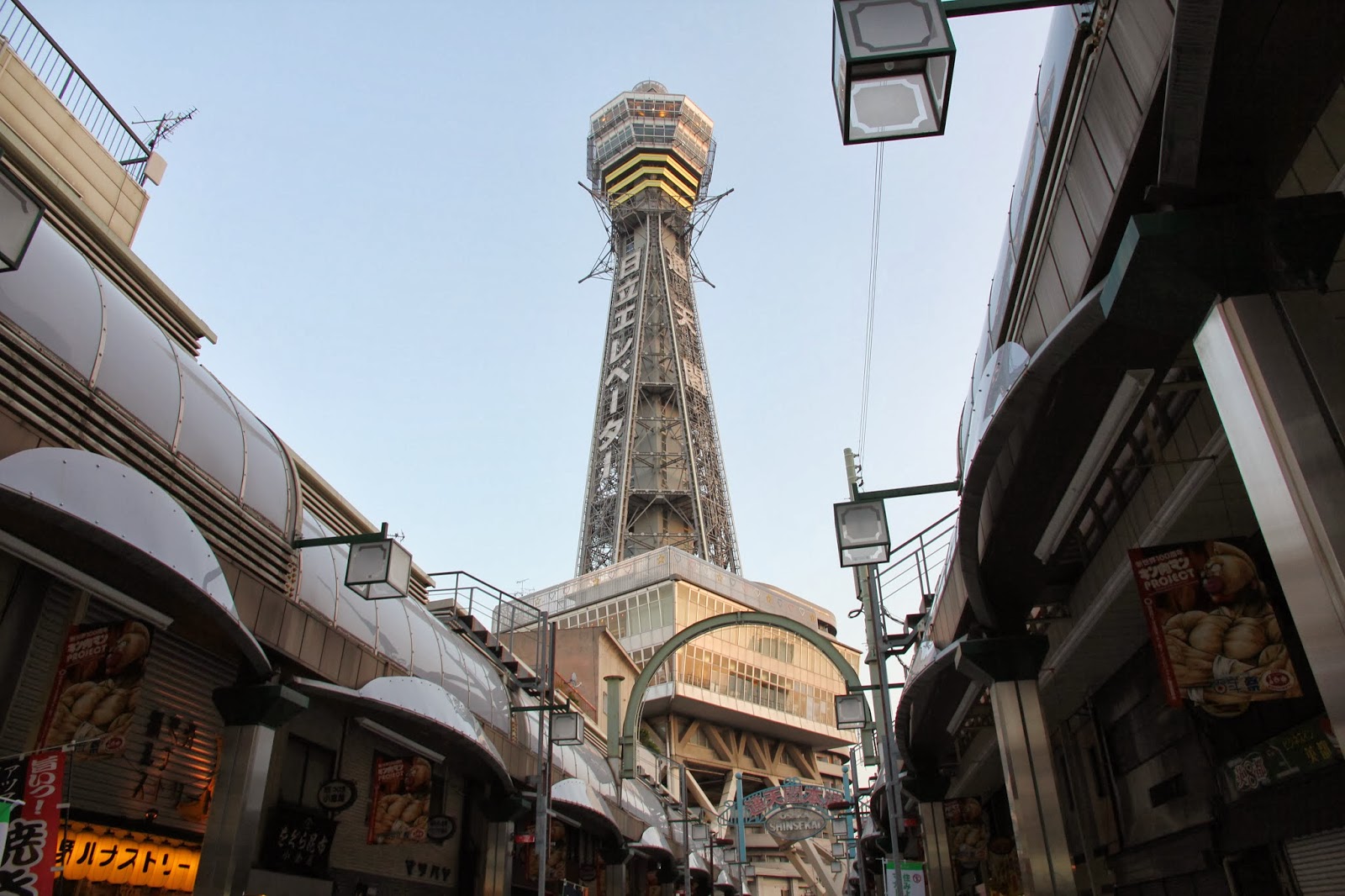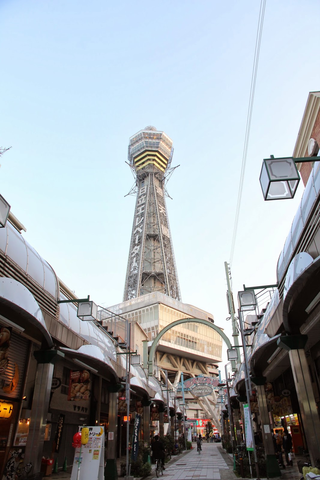 概要通天閣重建於第二次世界大戰後,可以說是一座新建築。它最早建於1912年,當初落成時,當地人都為它64米的高度而震驚,它也是當時東方各國的建築物中最高的。通天閣面積超過132000平方米、與當地人引以為豪的“Luna Park”公園都是新世界的有名景點。通天閣,這座令當地居民聯想起巴黎愛菲爾鐵塔的建築成為了當時大阪的標誌。但是,它在1943年由於突然遭受火災而被毀,後來為了給戰時的日本提供鋼鐵,就把殘存的通天閣拆除了。1956年,大阪人民在克服了種種困難之後,將通天閣重新豎立起來,它終於以嶄新的面貌出現在期待已久的市民的面前。