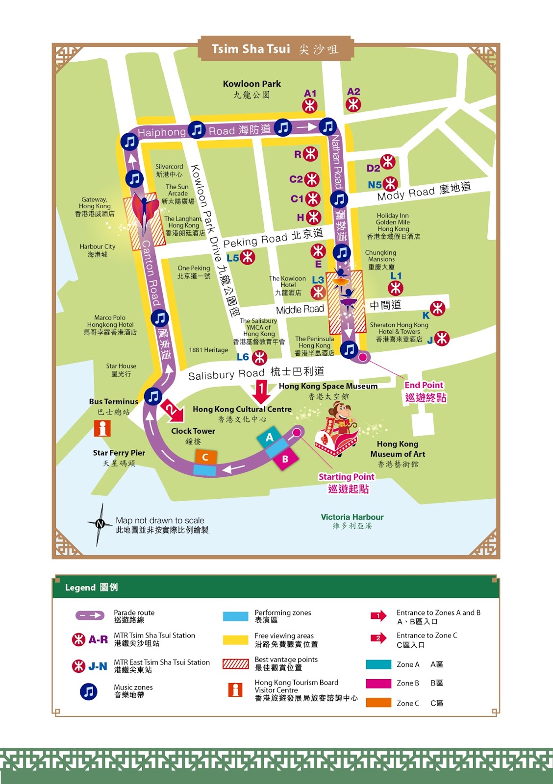 -巡遊隊伍由香港文化中心廣場出發(只限持入場券觀眾進場)。